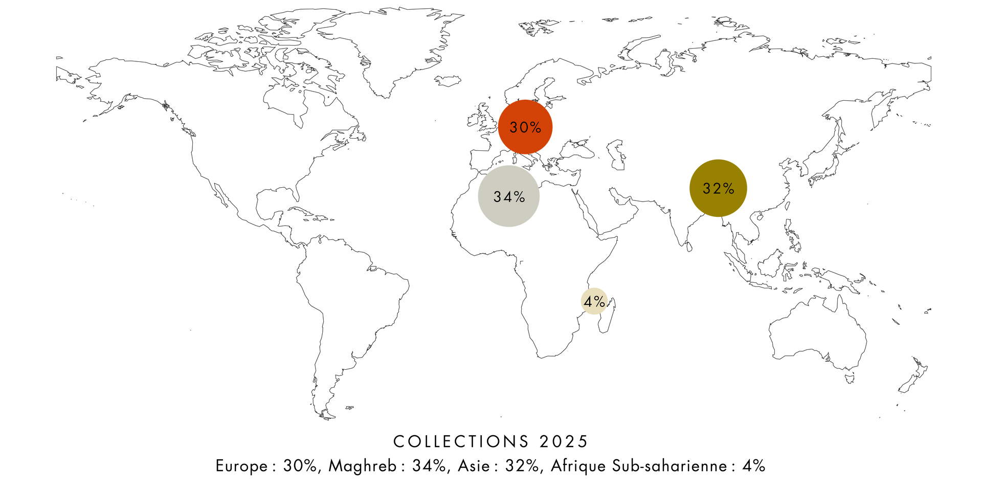 As part of our vision of slow fashion, we are focusing not only on the sustainability of our products, but also on the sustainability of our relationships by building loyal relationships with our partners. 43% of them have been with us for more than five years. These suppliers know our products, our requirements and work with us to improve our models. That's why we don't stop at their geographical location. However, we do our utmost to develop new local partnerships in Europe and North Africa.